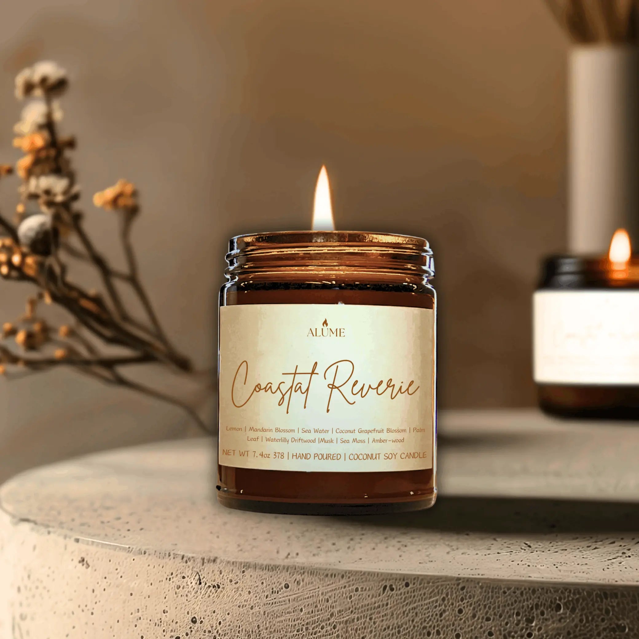 Embark on a journey of the senses with Coastal Reverie, a fragrance that encapsulates the invigorating essence of the ocean. This enchanting scent masterfully combines the fresh, uplifting notes of a cool ocean breeze with the warmth of sun-kissed florals and the sweetness of exotic fruits, effectively transporting you to the beaches of Bali without ever leaving your home. Delight in the harmonious balance of invigorating lemon and delicate mandarin blossom, enriched with the refreshing essence of sea water. Experience the creamy richness of coconut intertwined with the floral nuances of grapefruit blossom, complemented by the lush greenery of palm leaves and the soothing aquatic tones of waterlily. The fragrance deepens with the earthy elegance of driftwood, the sensuous warmth of musk, and the subtle brininess of sea moss, concluding with the sophisticated, woody undertones of amberwood. Allow yourself to be enveloped in this transformative scent, awakening your spirit and evoking the serene beauty of coastal living.